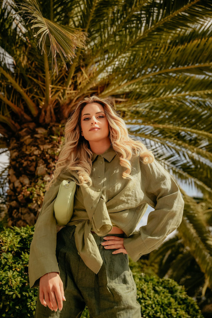 Bež salonke na visoku petu iz CCC-a zaokružile su outfit, a lokacija snimanja – predivne palme na Pulskoj Rivi – dale su savršenu proljetnu kulisu, svježu, živu i gotovo filmsku.