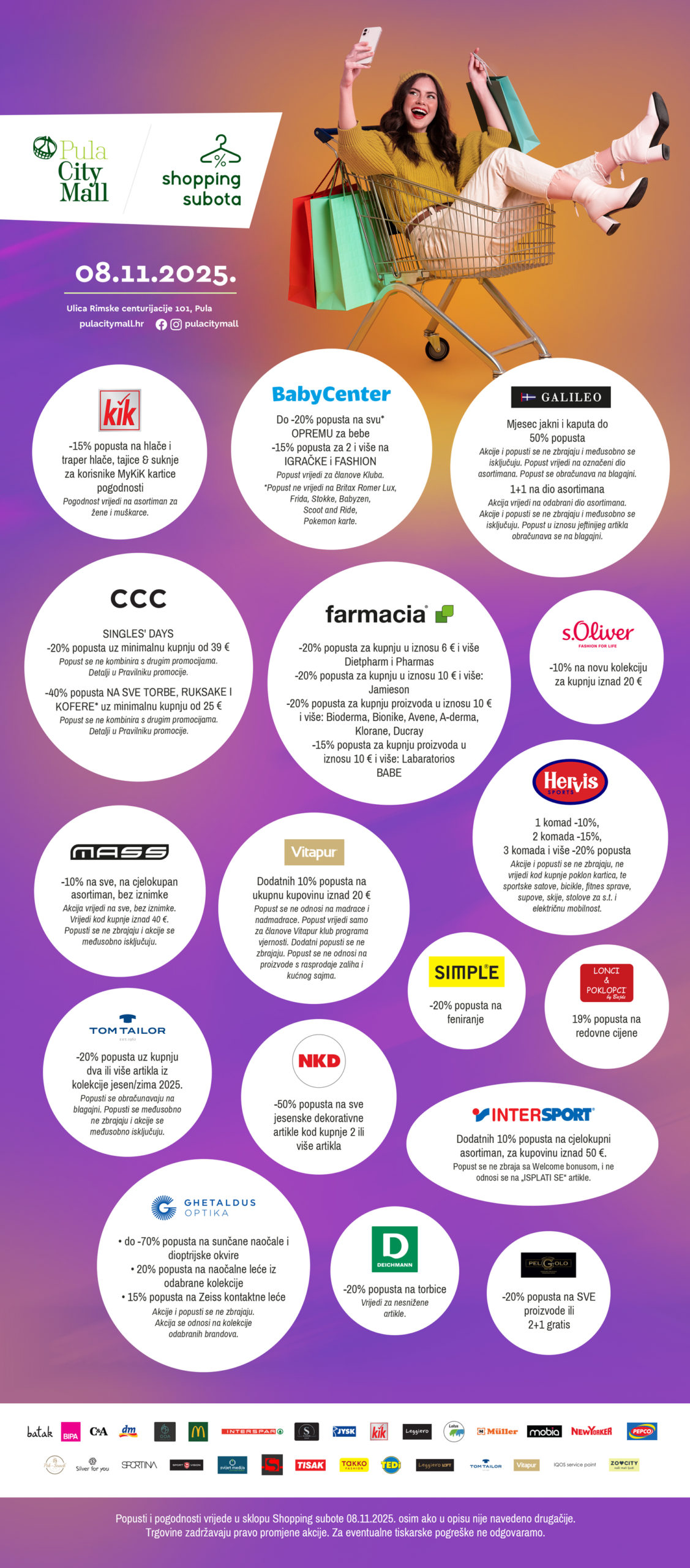 Trgovine Pula City Mall-a, ove subote 08.11.2025. pripremile su popuste, pogodnosti i akcije, a informacije o posebnim ponudama i popustima koje Vas očekuju, pronađite na linku ili fotografiji niže.